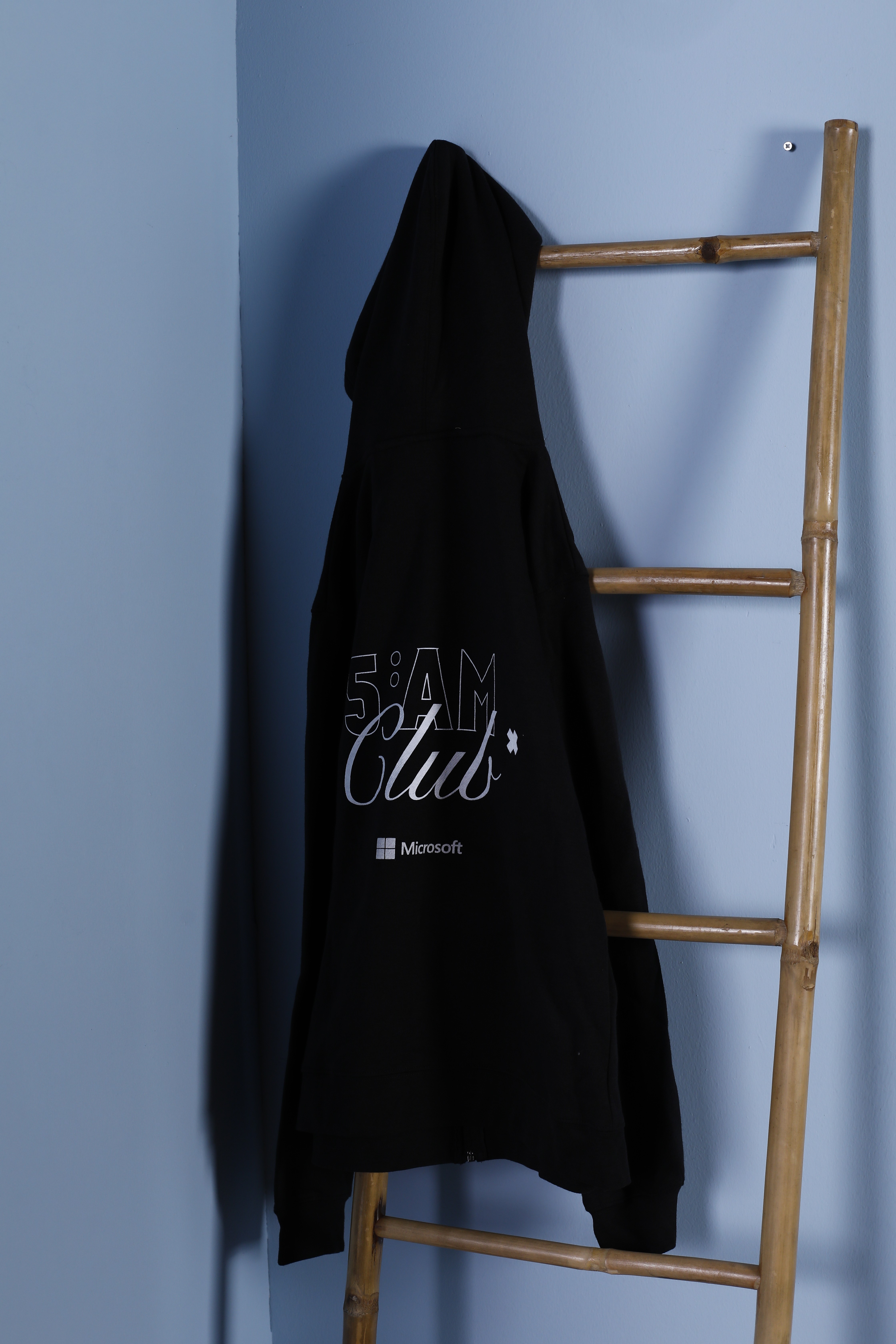 Branding for 5AM Club campaign. A program for Microsoft's employees inspired by the successful book of Robin Sharma. Sharma's method suggests an early morning routine dedicated to sports activity, learning, and meditation that starts from 5am while everyone is still asleep. The branding concept based on showing the advantages of being part of the club. The brand message is that we know it's not easy to change habits but it will be worth your efforts. The design contains a branding bundle, registration landing page, and communication materials.