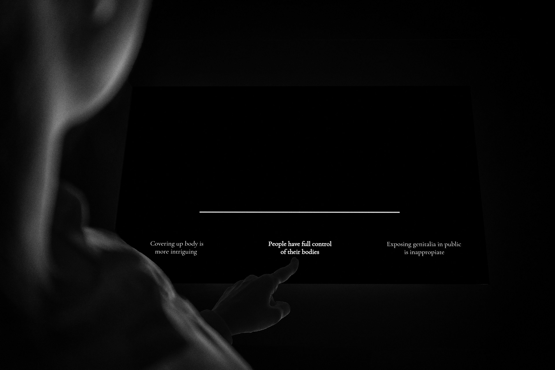 “Embody” is an interactive video art in which the viewers are asked to make a series of choices, intended to create an illusion that they can affect the visuals. The project is about violence against women and it shows a personal perspective of a violent scenario. Freedom of choice gives the viewer an illusion of control on what happens during the video, although all choices lead to the same ending. This helpless ritual aims to emphasize women’s passive behavior when living in a violent environment.