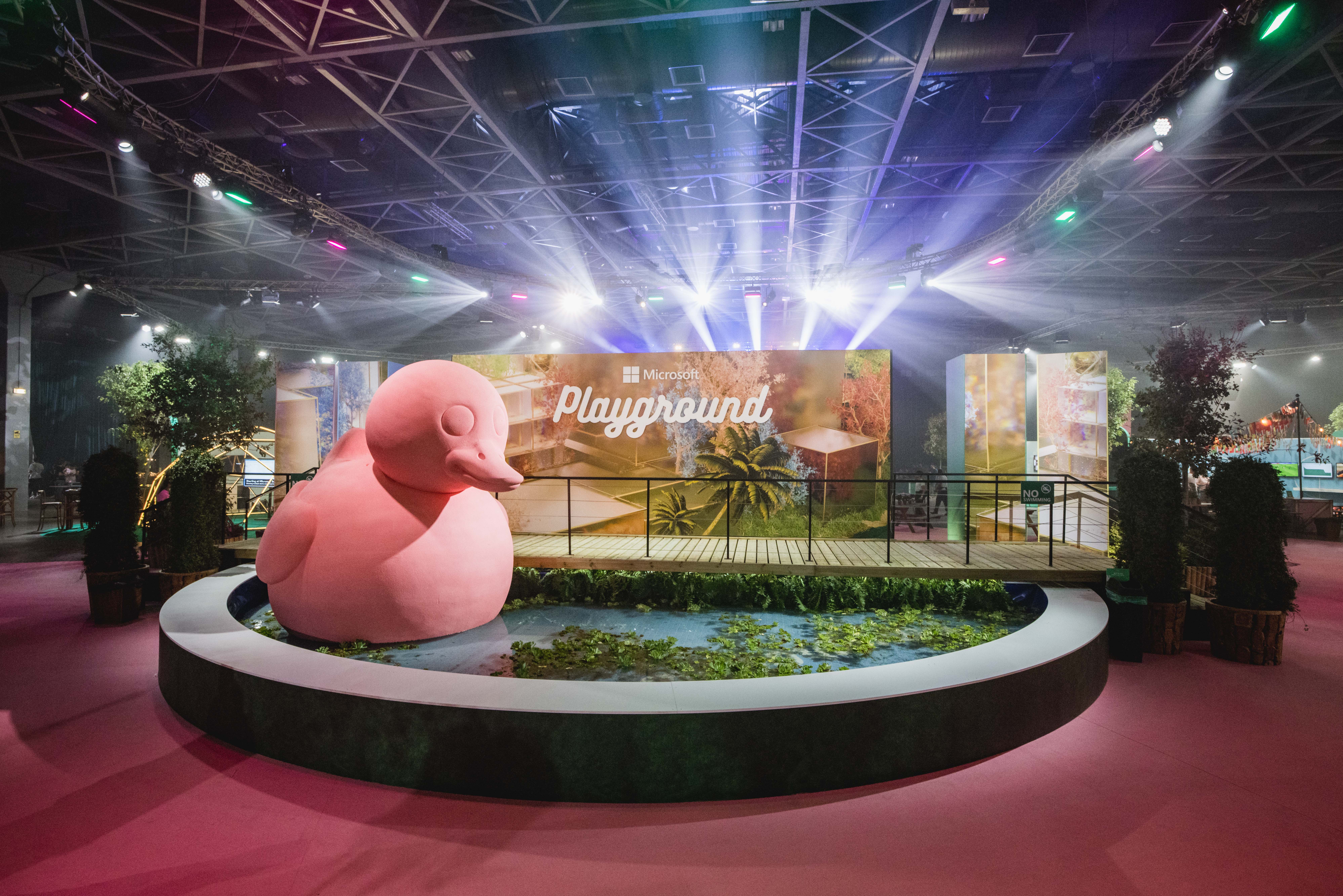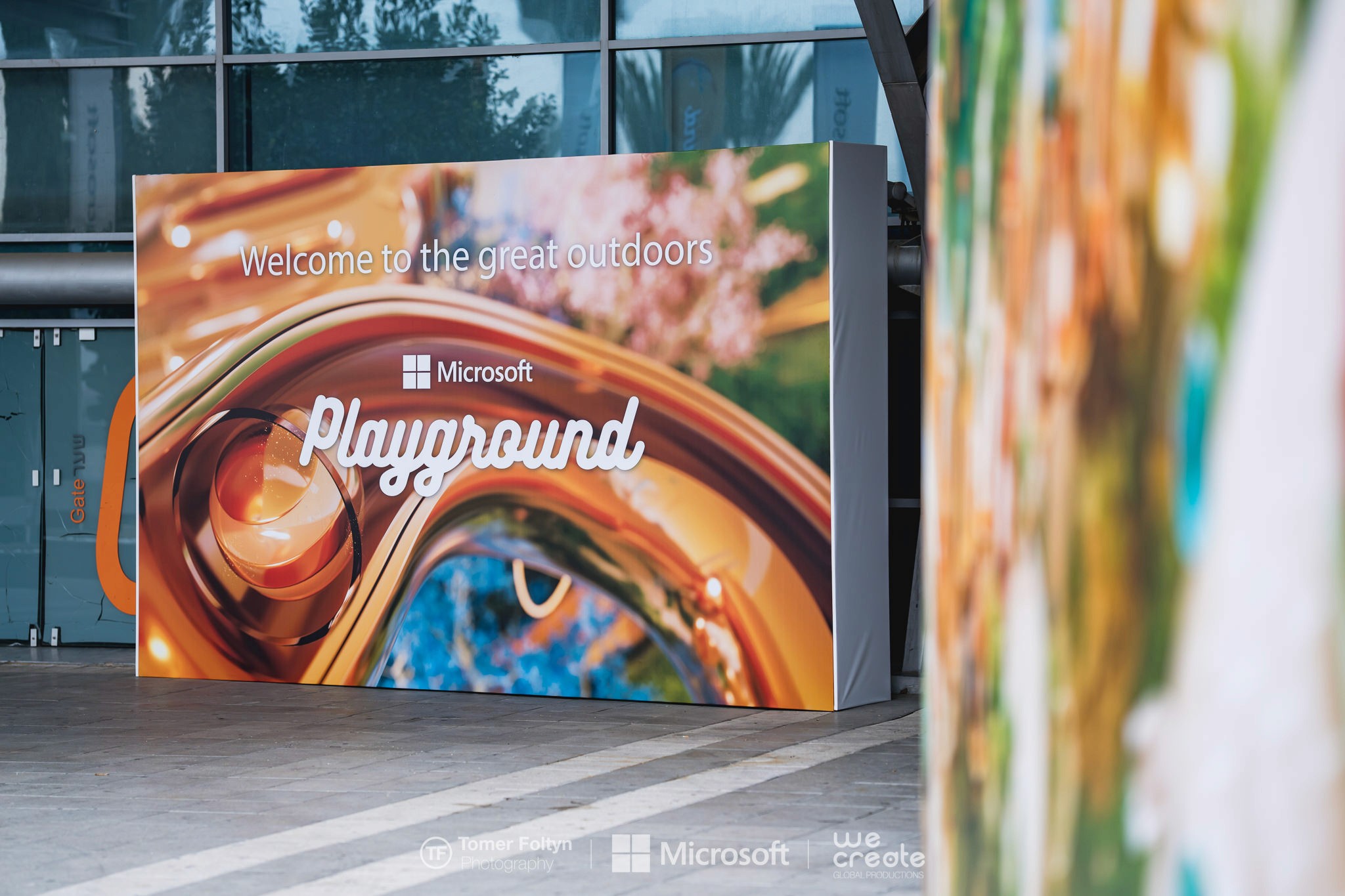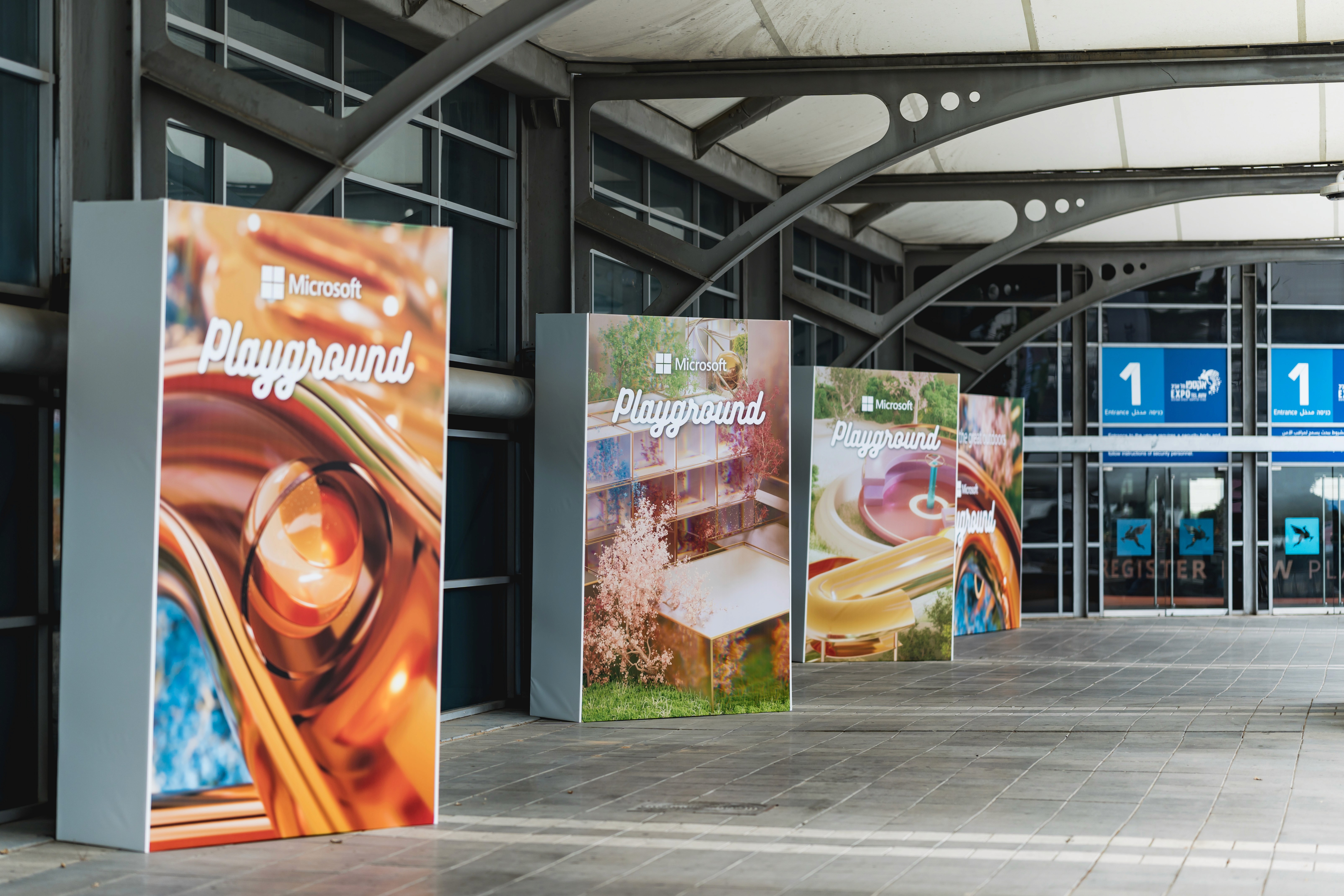 This year’s Microsoft Playground took a new direction - from the indoor stage to the outdoors. The concept was built around the idea of taking the “playground” literally outside, celebrating movement, exploration, and open‑air creativity. Every visual element, motion piece, and graphic system drew inspiration from outdoor activities: trails, maps, sports fields, camping gear, and the energy of being outside.